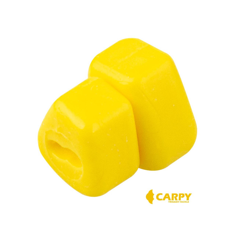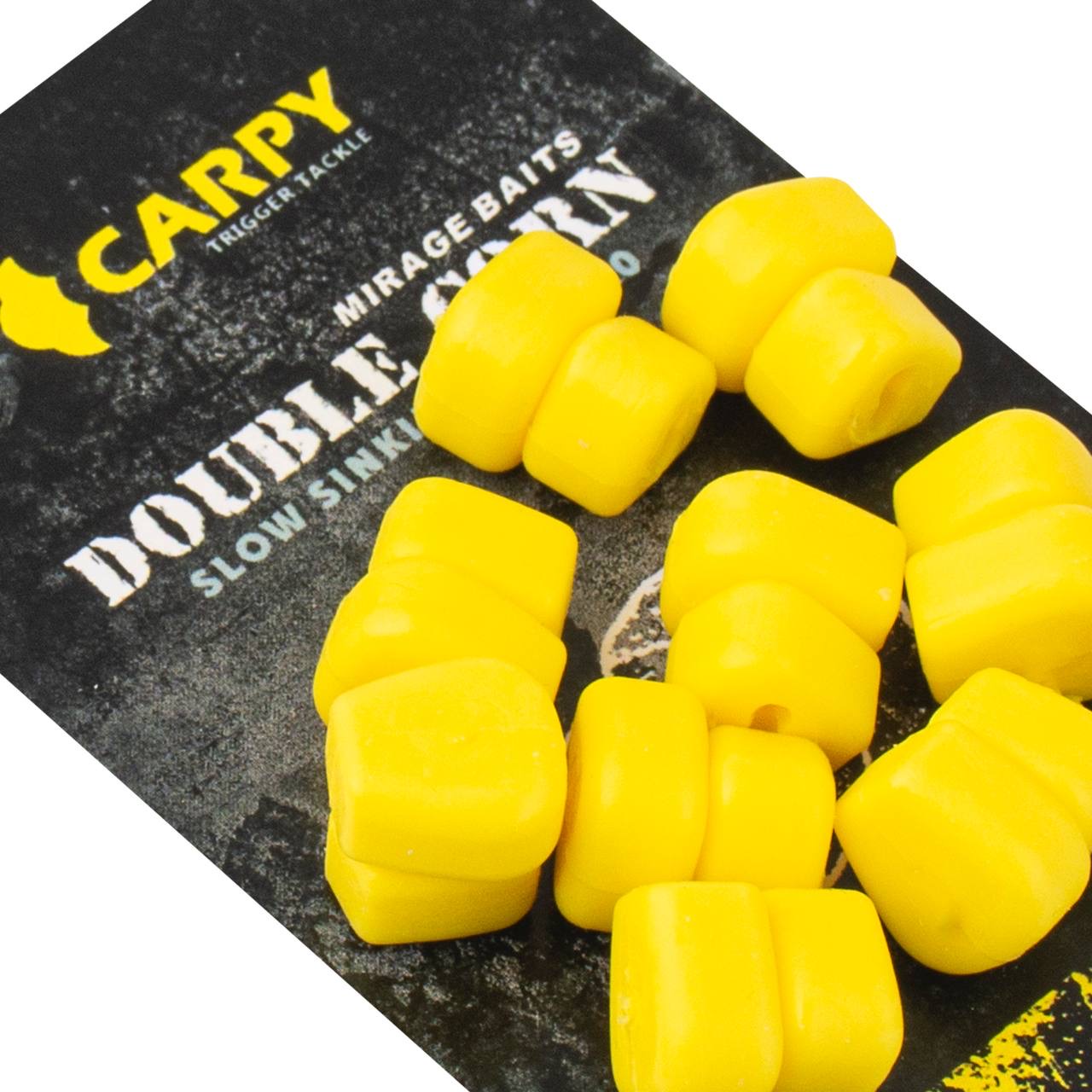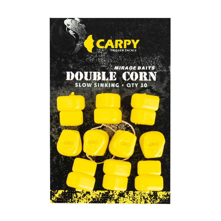 ذرت مصنوعی دو قلوی کارپی با ابعاد ۱۲ در ۱۳ میلیمتر دارای قدرت شناوری متعادل ست و تنها با وزن قلاب شما به آرامی بر روی بستر قرار می گیرد ، این طعمه با رنگ خاص و نحوه قرارگیری بر روی بستر که سبب در گیر نشدن قلاب با محتویات کف آب می شود ، در زمانهایی که در طعمه پاشی خود از ذرت طبیعی استفاده کرده اید می تواند به طرز معجزه آسایی موفق عمل کند.