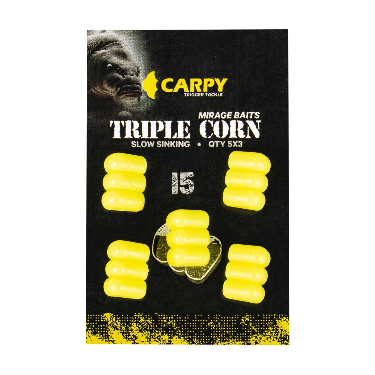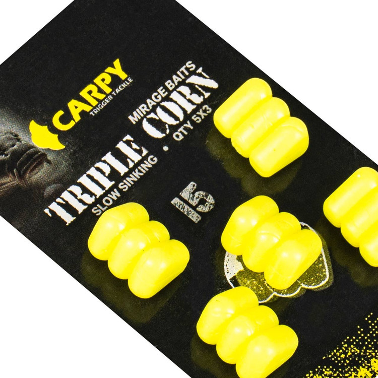 بسیاری از ماهیگیران در جستجوی ذرت متعادل هستند که با استفاده چند عدد از آن باز هم تعادل یک ریسه کف خواب به هم نریزد و قدرت شناوری محصول فقط وزن قلاب را خنپی کرده و در بالای کف بستر بایستد. ذرت سه قلوی برند کارپی بخوبی ریسه های با ریسه های کف خواب شما کار می کند و بر خلاف سه ذرت مصنوعی معمولی ، مایز و مینی کارپی که رنگی بسیار طبیعی دارند ، از یک رنگ سبز فسفری بهره می برد که مطابق استراتژی جذب بصری کپور بیشترین جلب توجه را ایجاد کند.